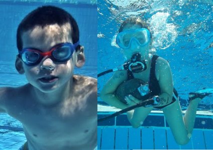 Az úszástanulás mellett kipróbáljuk az uszonnyal, a légzőcsővel, sőt még a palackkal történő úszást is.